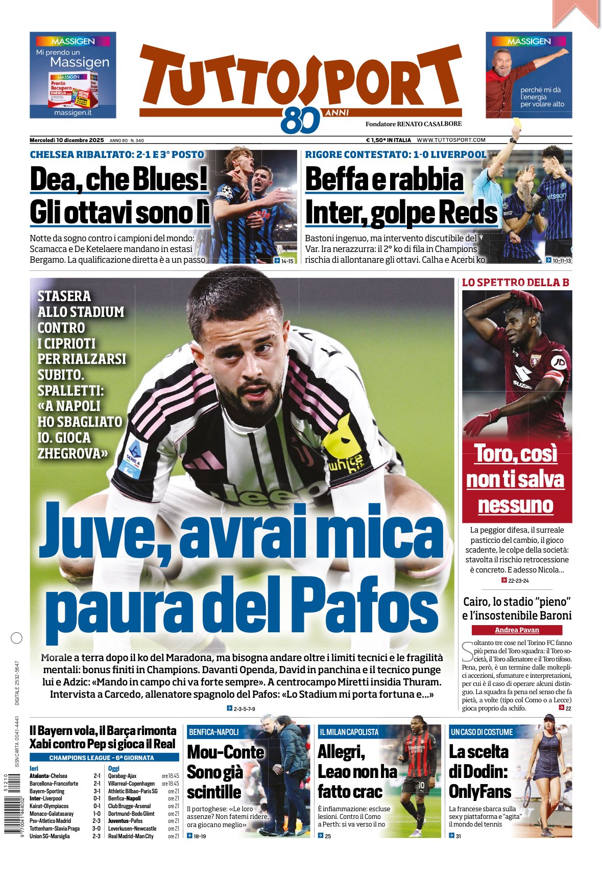 Le prime pagine sportive nazionali – 10 dicembre 2025
