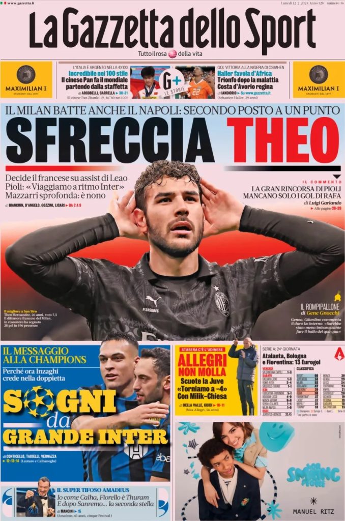 Le Prime Pagine Sportive Nazionali – 12 febbraio - Calcio News 24
