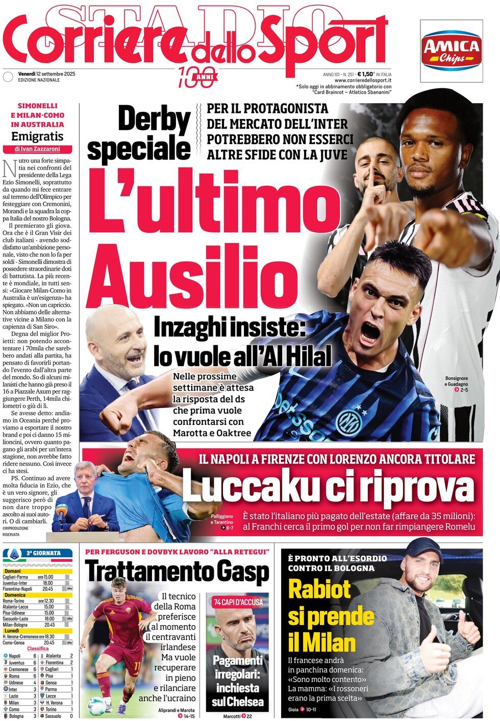 Le prime pagine sportive nazionali – 12 settembre 2025