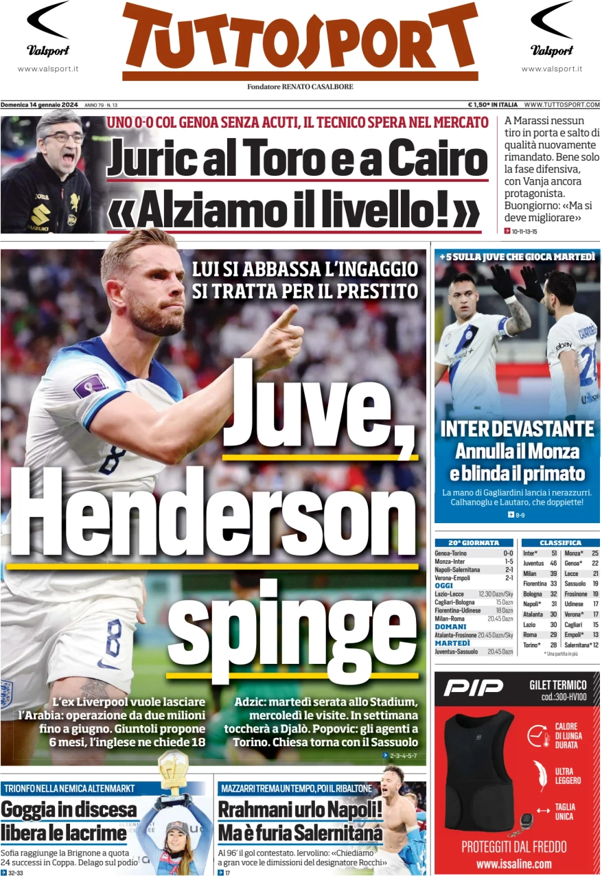 Le Prime Pagine Sportive Nazionali – 14 gennaio - Calcio News 24