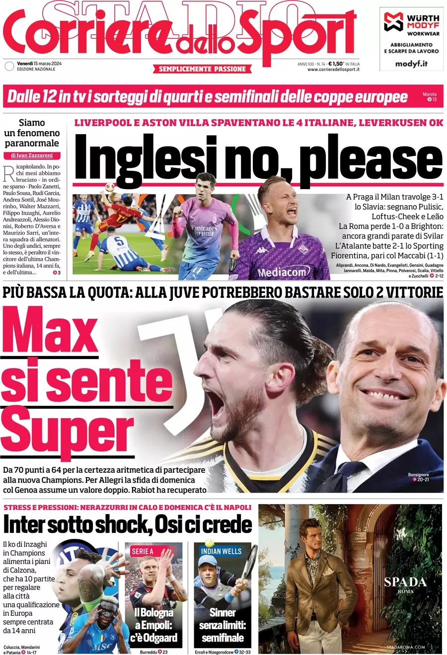 Le Prime Pagine Sportive Nazionali – 15 marzo