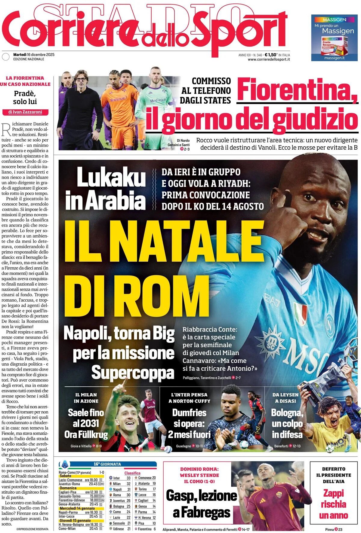 Le prime pagine sportive nazionali – 16 dicembre 2025