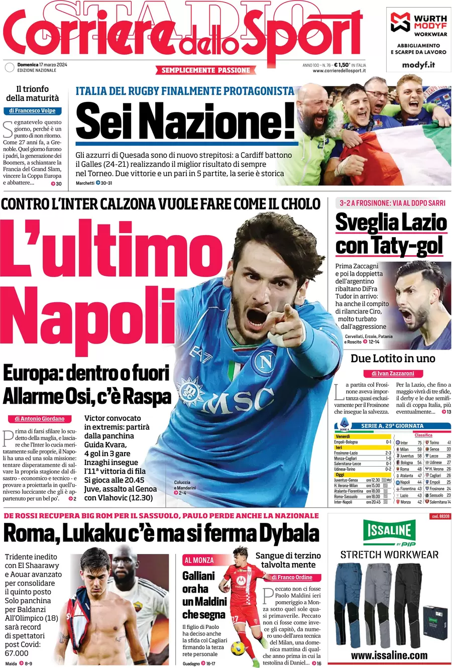 Le Prime Pagine Sportive Nazionali – 17 marzo