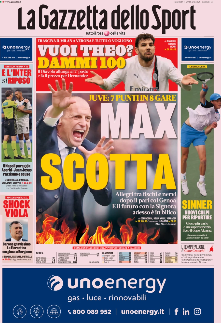 Le Prime Pagine Sportive Nazionali – 18 marzo - Calcio News 24