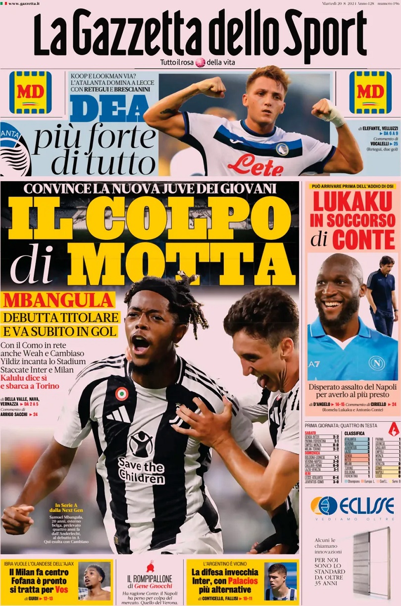 Le prime pagine dei quotidiani sportivi di oggi in edicola: Tuttosport, Corriere dello Sport e La Gazzetta dello Sport