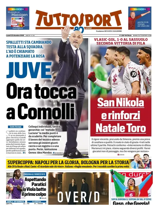 Le prime pagine sportive nazionali – 22 dicembre 2025