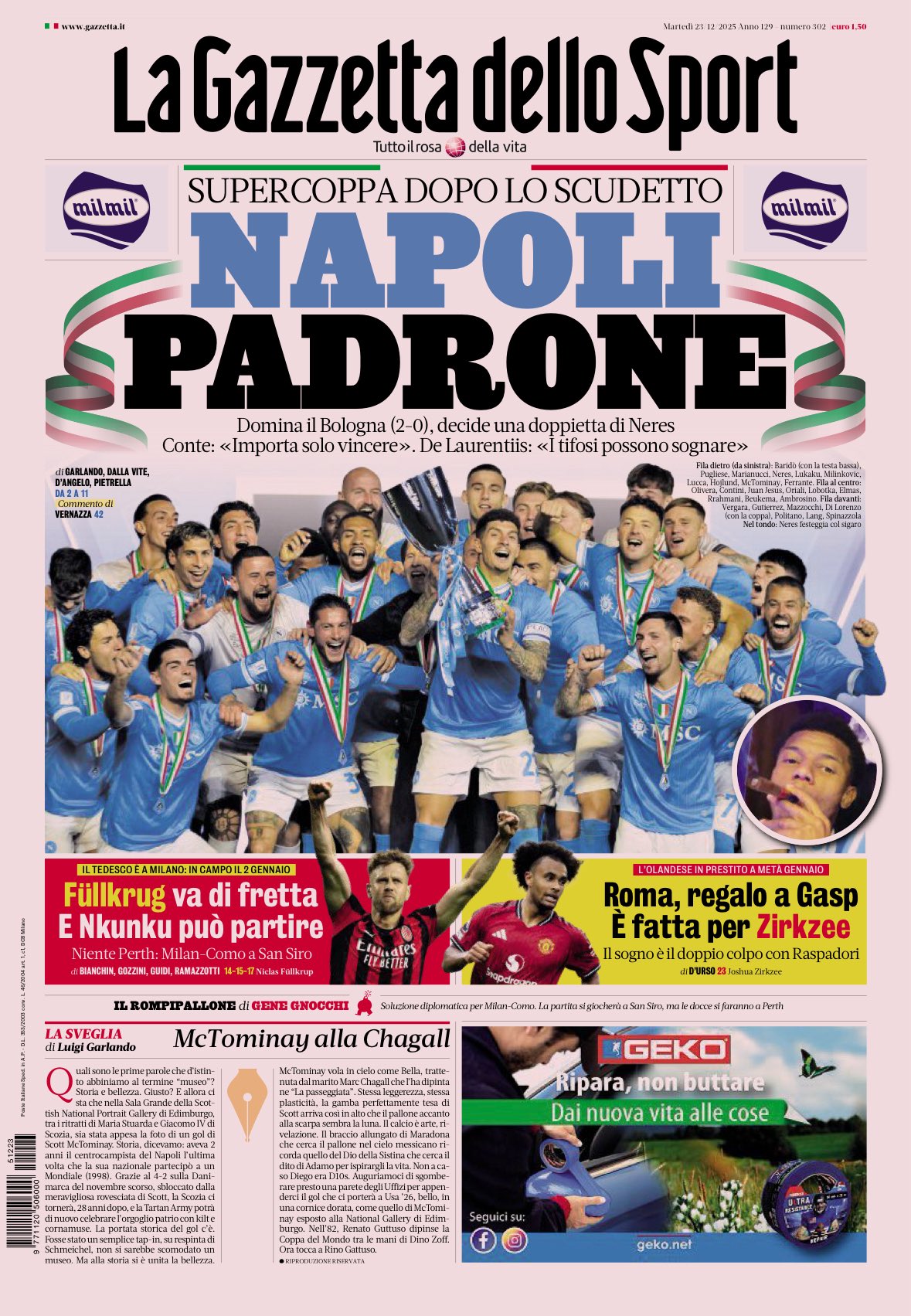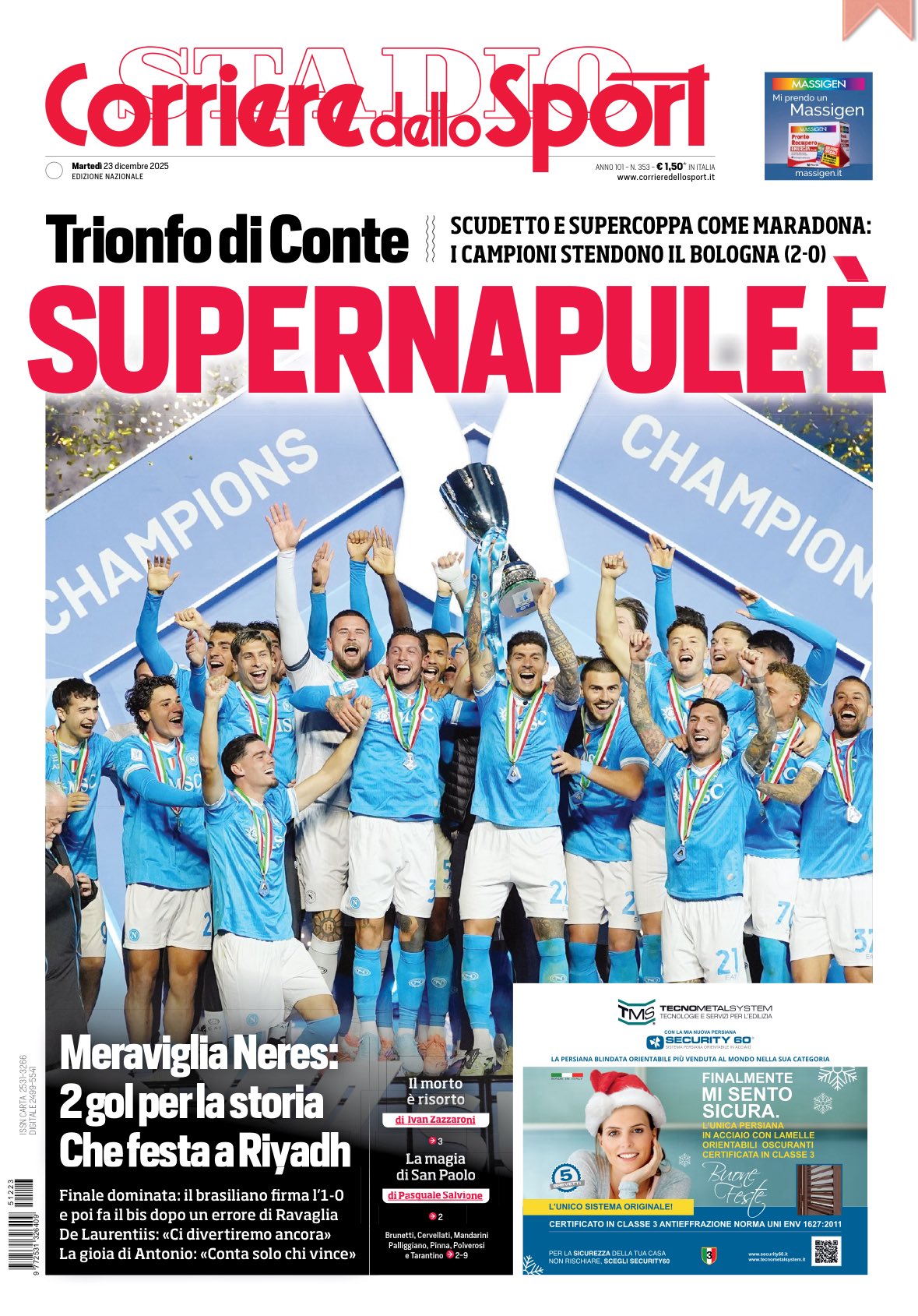 Le prime pagine sportive nazionali – 23 dicembre 2025