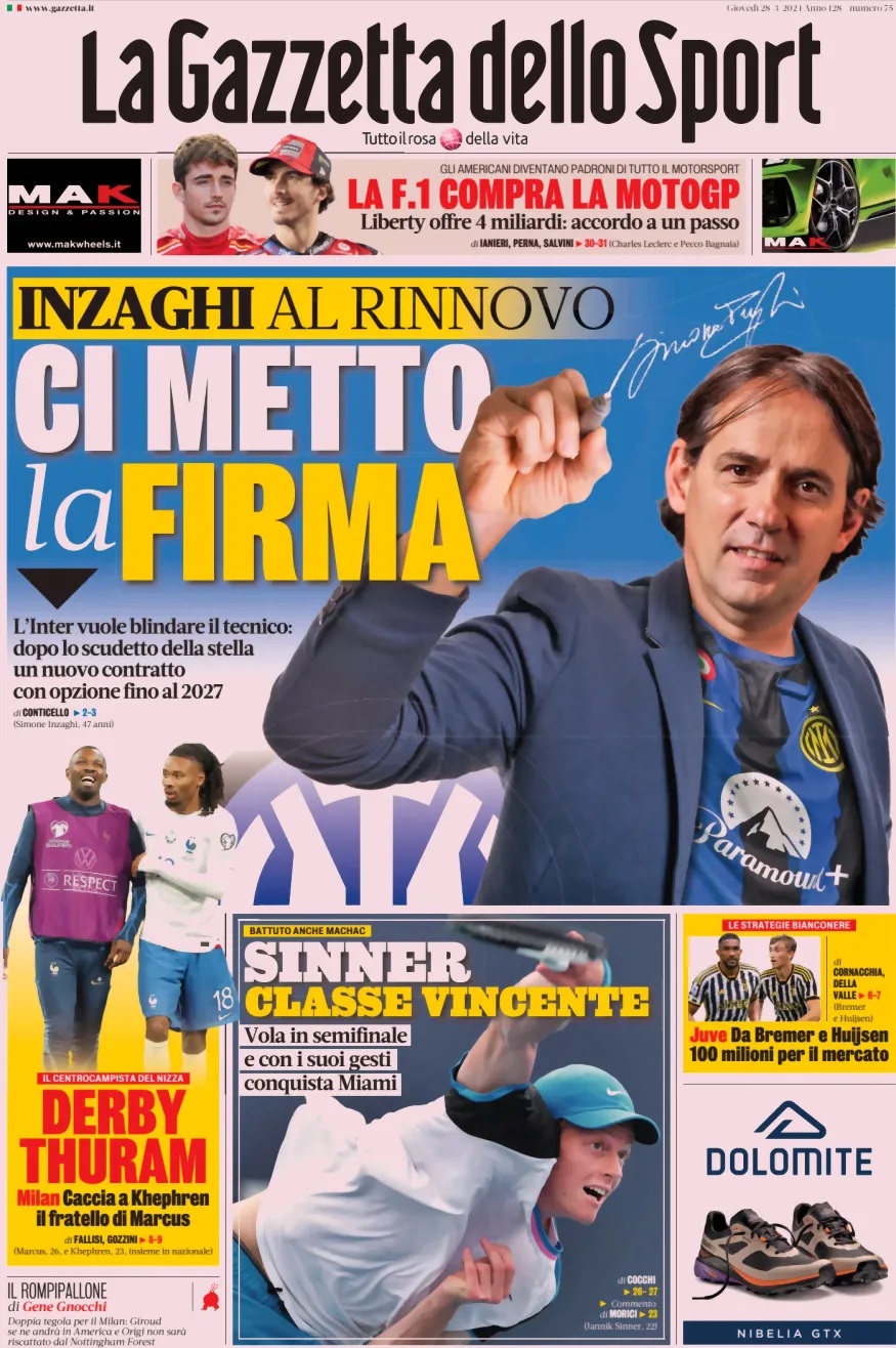 Le Prime Pagine Sportive Nazionali – 28 marzo