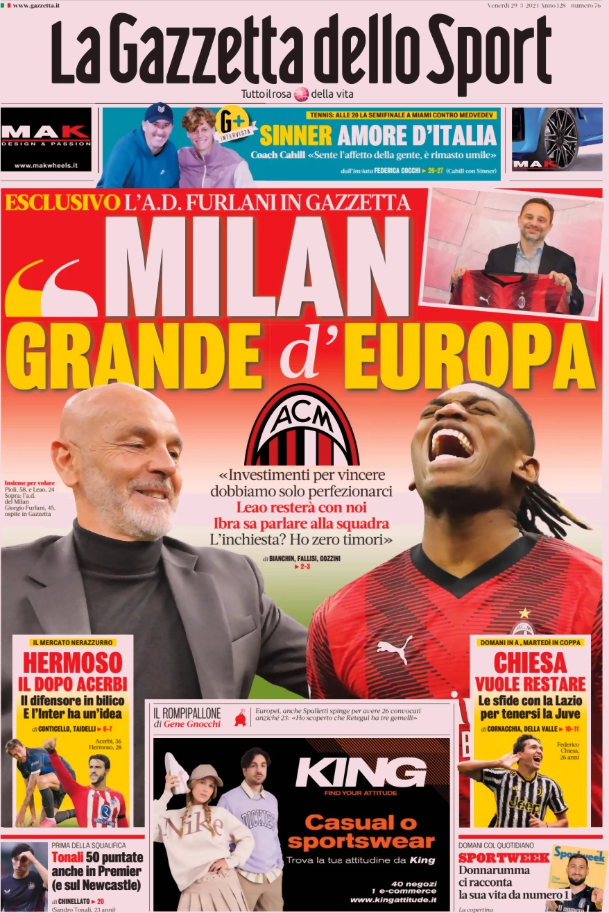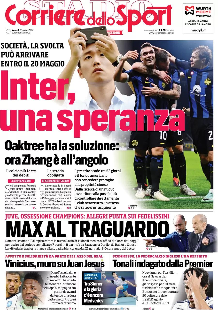 Le Prime Pagine Sportive Nazionali – 29 marzo