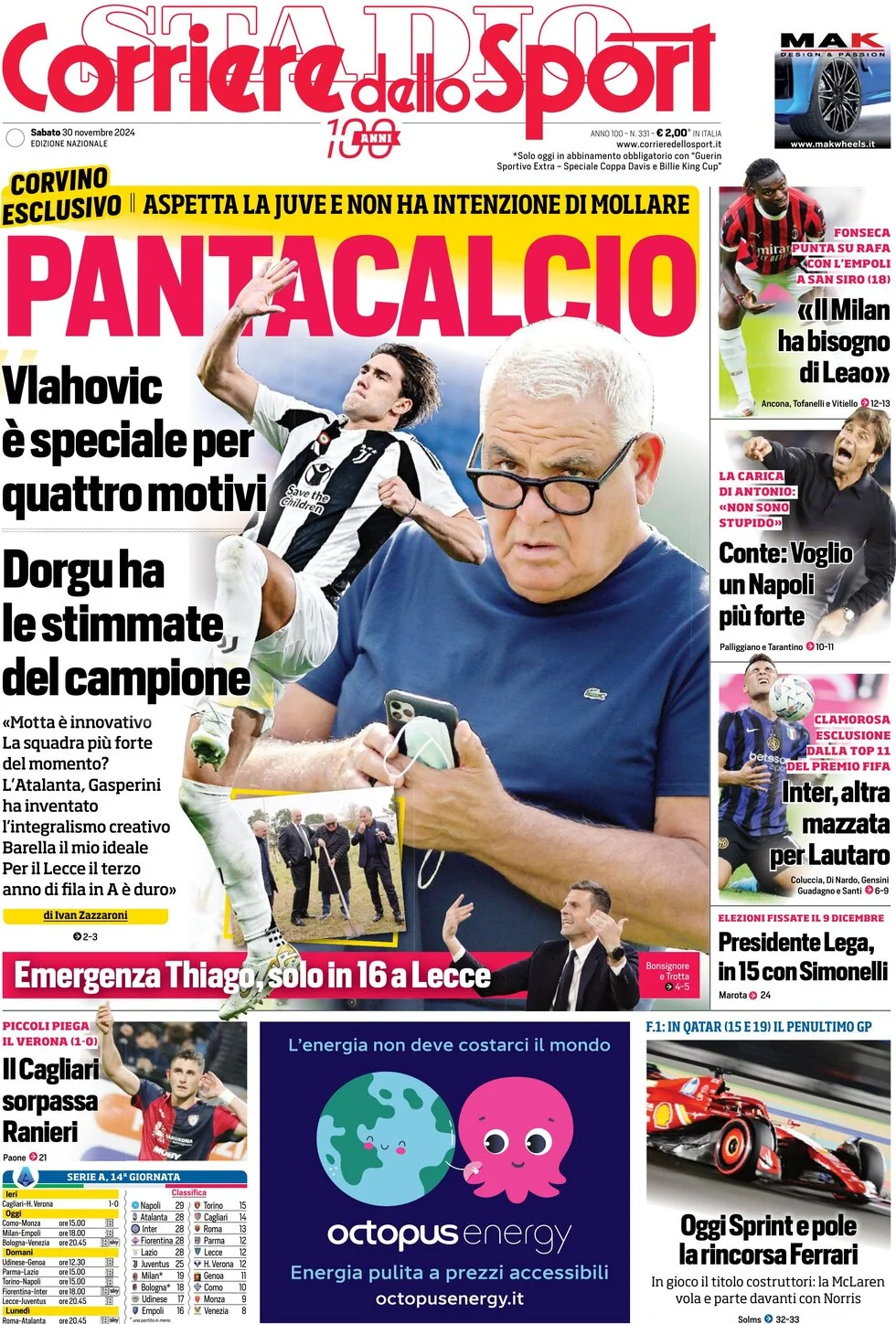Le prime pagine sportive nazionali – 30 novembre