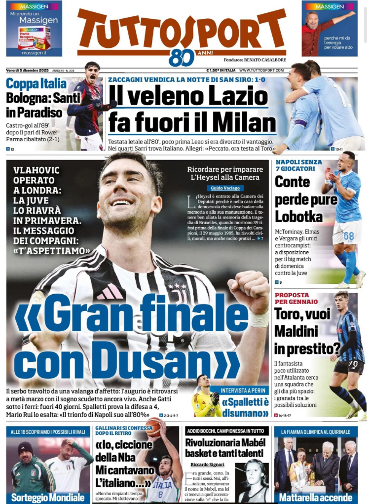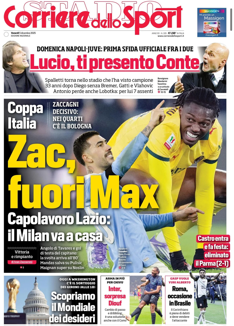 Le prime pagine sportive nazionali – 5 dicembre 2025