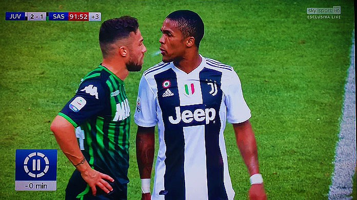 Pesantissima sanzione in vista per Douglas Costa. Non solo lo sputo a Federico Di Francesco già segnalato dal VAR, l’esterno della Juventus potrebbe essere punito anche tramite la prova tv, che analizzerà anche la gomitata rifilata al giocatore avversario. Secondo quanto scritto dal Procuratore Federale, Giuseppe Pecoraro: «Bisogna valutare l’azione di Douglas Costa a partire dalla gomitata, per valutare il comportamento del giocatore juventino nel suo complesso con la prova tv».