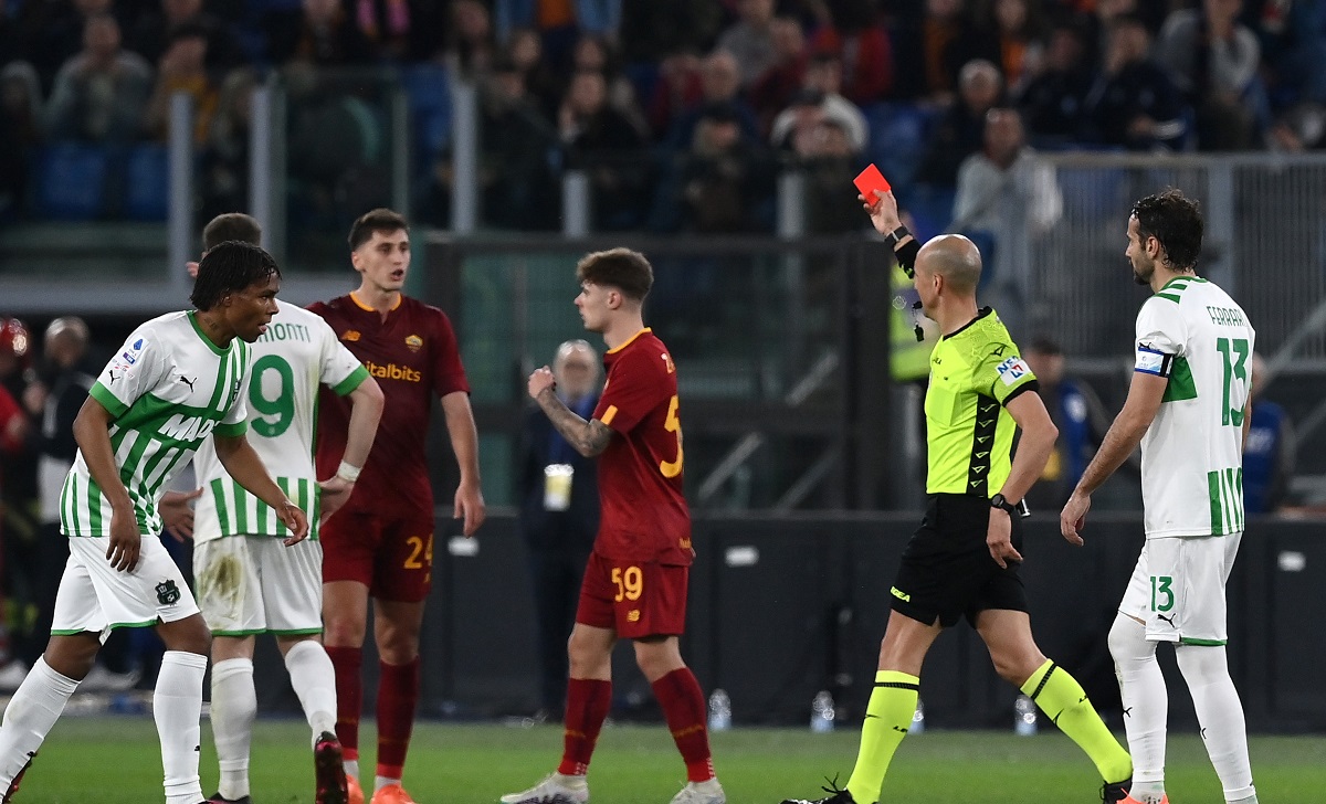 Subito dopo l’espulsione di Kumbulla contro il Sassuolo, il sito VoceGialloRossa.it ha estrapolato il labiale difensore della Roma dopo il cartellino rosso.