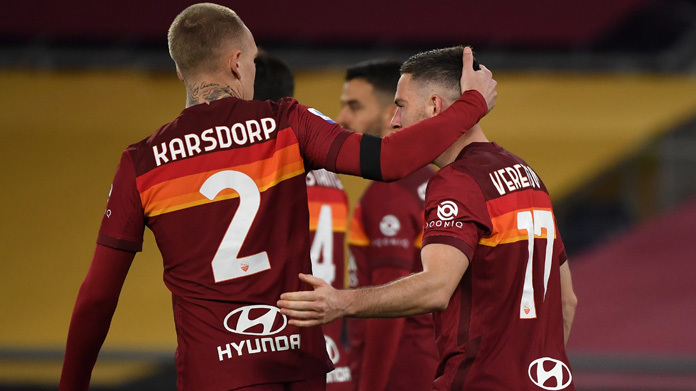ROMA (3-4-2-1): Pau Lopez 7; Mancini 7,5, Cristante 7, Kumbulla 6; Karsdorp 6, Villar 6,5, Diawara 6 (dal 78′ Ibanez sv), Spinazzola 6,5 (dal 78′ Bruno Peres sv); Pedro 5,5 (dal 62′ El Shaarawy 7), Pellegrini 7 (dal 78′ Carles Perez sv); Mkhitaryan 6 (dal 35′ Borja Mayoral 5). All. Paulo Fonseca 7.