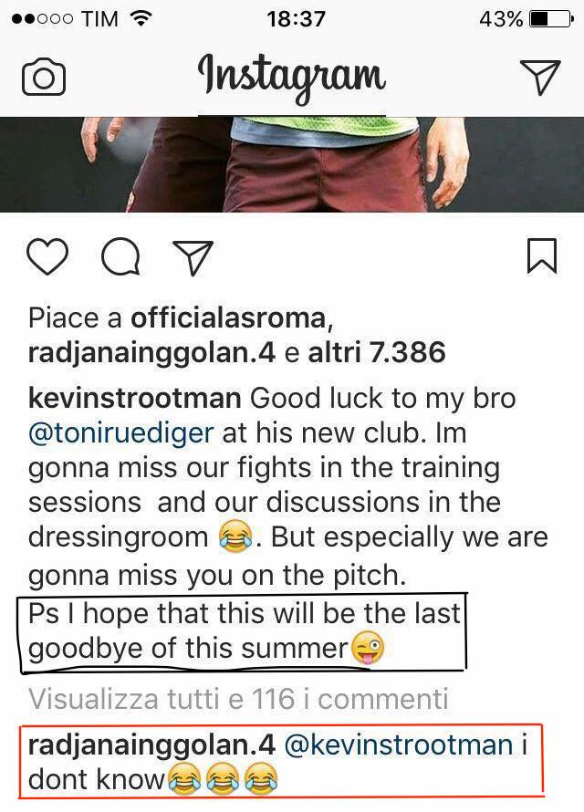 Il post di Strootman e il commento di Nainggolan