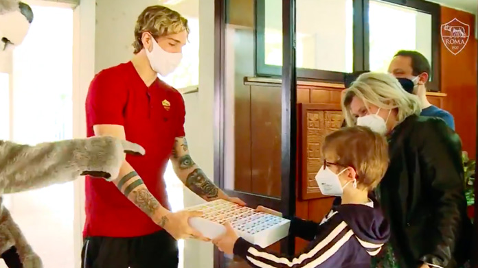 Splendido gesto di Nicolò Zaniolo per le festività pasquali. Il giocatore – in attesa di tornare in campo dopo il lungo infortunio – ha distribuito uova di Pasqua, sciarpe e magliette direttamente a casa degli abbonati della Roma Under 10.