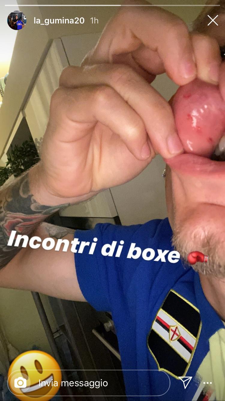 Lo stesso attaccante blucerchiato, tramite il proprio profilo Instagram, ha postato una foto della sua bocca piuttosto tumefatta dal colpo, definendo la partita di ieri un «incontro di boxe».
