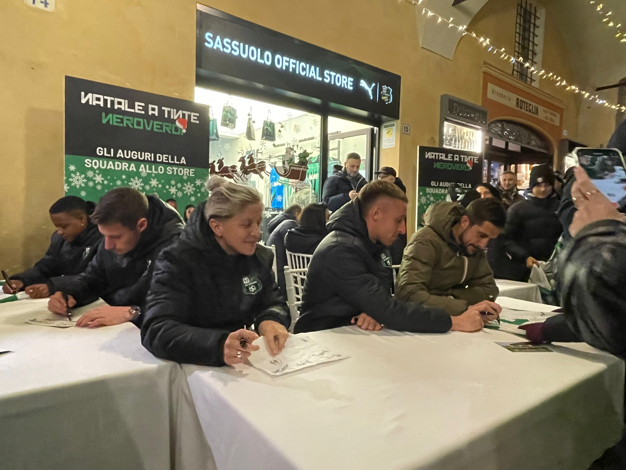 Giornata di festa e di auguri di Natale allo store del Sassuolo, oltre a tantissimi tifosi neroverdi presenti anche Dionisi, Pinamonti e Frattesi