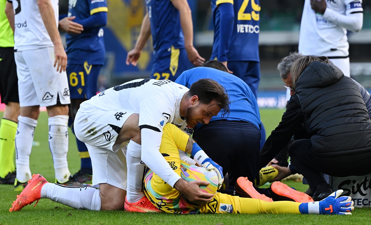 Bruttissimo infortunio alla caviglia per Dragowski durante la sfida tra Spezia e Verona. Il portiere ha lasciato il campo in barella e salterà il mondiale. Inoltre, tutti i calciatori dello spezia con le mani in faccia e qualcuno anche con le lacrime.