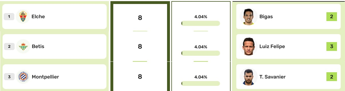 A pari merito ci sono 3 club che hanno accumulato già 8 rossi. Due fanno parte della Liga, dove si ha il cartellino più pesante piuttosto sul facile. Ed è interessante vedere lo status delle due squadre colpevoli. Una è l’Elche: club che ormai si può considerare retrocessa e lo è da tempo, con un distacco dalla zona salvezza di 13 punti. L’altra è il Betis, che ha nell’ex laziale Luiz Felipe il più duro o maldestro, a seconda dei punti di vista: peraltro la squadra di Siviglia è impegnata nella corsa per un posto Champions, è bene darsi una regolata se si vuole competere ad armi pari con chi sta davanti. Quando Betis ed Elche si sono affrontati, è finita sempre con qualcuno cacciato tra i più deboli, ben 3 tra andata e ritorno. Infine, c’è un rappresentante francese: il Montpellier. Classifica tranquilla ma nervi piuttosto logorati: anche nell’ultima gara vinta con il Clermont, Ferri è riuscito a farsi buttare fuori con due gialli nei minuti di recupero…