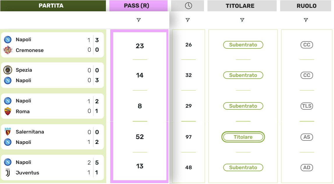 Nella tabella si può osservare il rendimento e la duttilità di Elif. Nell’ultimo mese è stato titolare solamente a Salerno e i 97 minuti che lo hanno visto in campo certificano una buona attitudine alla pulizia di gioco, con 57 passaggi riusciti. Nelle altre 4 circostanze il tempo che ha avuto a disposizione è stato minore, ma gli basta mezz’ora all’incirca per lasciare un segno. Importante è ancor più la quantità delle zone occupate dal giocatore, che ha rivestito più ruoli: ala destra, ala sinistra, mezzala sinistra e centrocampista centrale. Il Corriere dello Sport di oggi gli dedica un servizio, definendolo «Supereroe per mezz’ora» ed esaltandolo: «Elmas ha 23 anni ma dai numeri sembrerebbe un veterano. Con la maglia del Napoli ha già raccolto 154 presenze segnando 17 gol che non sono pochi per uno come lui, la prima delle alternative, un ragazzo sempre sul pezzo: entra come se la stesse già giocando in panchina, subito caldo, decisivo, devastante nell’immediato, non ha bisogno di tempo per entrare in sintonia con la partita. Sembra distante anche il post ironico d’inizio stagione quando “celebrò” la panchina, il suo primo amore come scrisse sui social. Un messaggio sincero, altro che polemico. Elmas conosce bene il suo ruolo e ne va fiero, la vita come il calcio ha bisogno anche dei Robin, di chi sa emergere all’ombra degli altri».