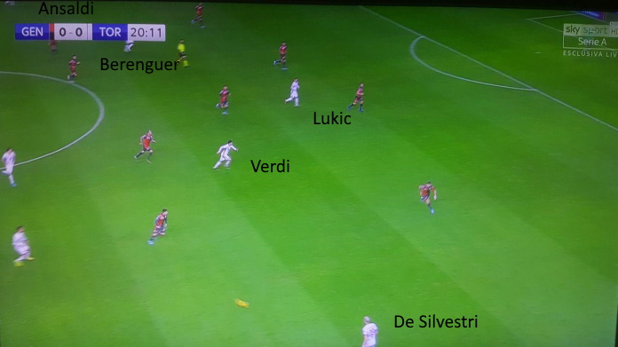 Senza Belotti e con Zaza in panchina, Mazzarri ha schierato il Torino a Marassi con una formazione atipica. In teoria c’era un attacco leggero con Berenguer e Verdi in avanti. In pratica, è stato Lukic ad agire come prima punta.