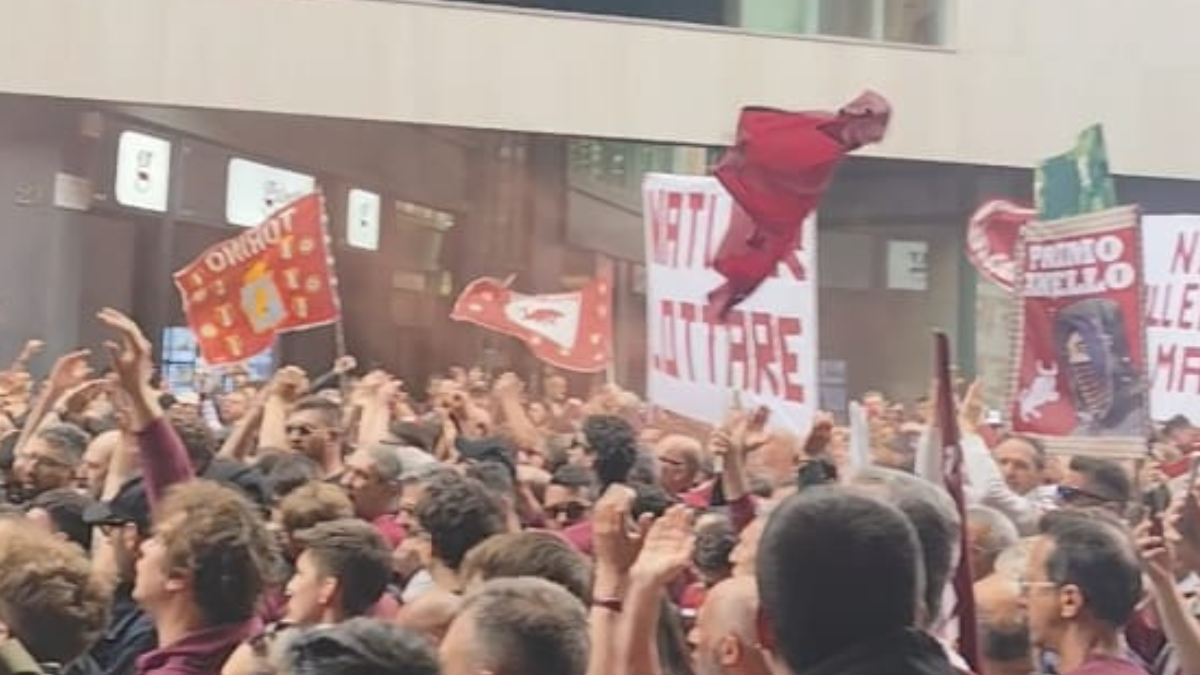 Torino, inizia la marcia dei tifosi: marea granata in centro, contestazione verso Cairo – VIDEO