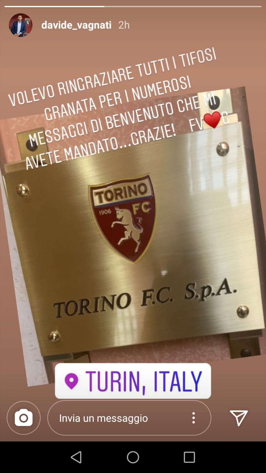 Con una storia sul suo profilo Instagram Davide Vagnati ha ringraziato tutti i tifosi del Toro per i messaggi di benvenuto. Ieri l’ex Spal è diventato il nuovo direttore sportivo granata prendendo il posto di Massimo Bava.