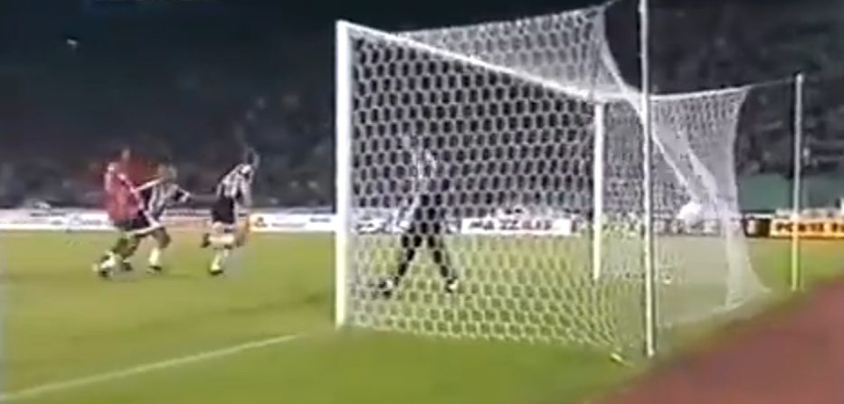 Pronti via e subito Bertotto dopo 4 minuti, su un retropassaggio tanto debole quanto fatale, permette a Kluivert di portare in vantaggio i rossoneri. L’Udinese è stordita tanto da rischiare il raddoppio, ma è questione di poco prima di arrivare al pareggio bianconero: cross dalla destra di Helveg che ha la meglio su Albertini, trovando il Kaiser che di testa porta il punteggio sull’1-1. Nel finale Leonardo colpisce la traversa, ma il risultato rimane invariato.