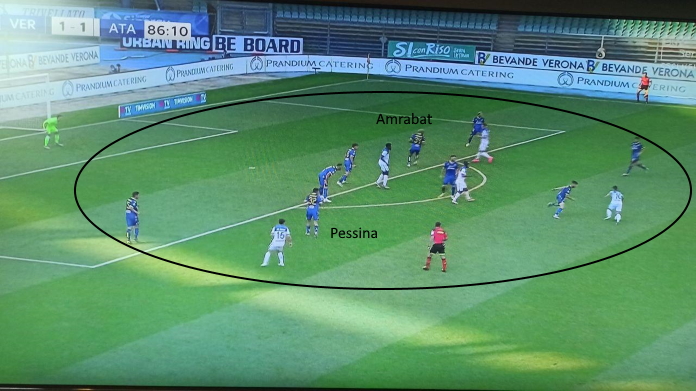 Il pareggio di Pessina pochi minuto dopo il vantaggio di Zapata è stato un brutto colpo per la Dea, ha rimesso in salita una partita che sembrava ormai in discesa. Nell’ultima mezz’ora, l’Hellas ha mantenuto una forte concentrazione difensiva fino alla fine: continuava a fare molta densità in mezzo e a coprire bene la palla.