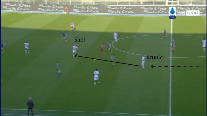 Insomma, quando si affronta un sistema difensivo a uomo come quello di Juric, bisogna muovere palla velocemente e muoversi molto. Krunic svariava parecchio su tutto il fronte per ricevere palla e creare spazi, mandando fuori posizione i difensori rivali.