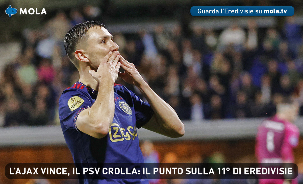 L’11ª giornata di Eredivisie ha portato incredibili sorprese. Il PSV Eindhoven di van Nistelrooij è crollato per 4-2 in casa del Groningen, e il Feyenoord non è andato oltre l’1-1 contro il Fortuna Sittard. Non fa notizia la vittoria per 1-4 dell’Ajax contro l’RKC Waalwijk, ma classifica alla mano quello dei lancieri (che saltano a +4) è un successo importante. La massima serie del calcio olandese è un’esclusiva di Mola (clicca QUI per la registrazione gratuita).