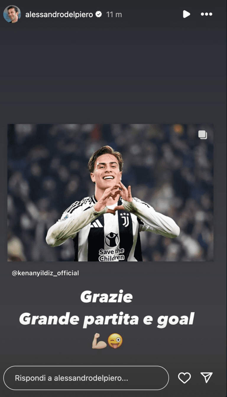 Kenan Yildiz, ha fatto emozionare ieri sera, che dopo il 2-0 della sua Juventus contro il Torino ha voluto dedicare il gol messo a segno ad Alessandro Del Piero, proprio nel giorno del 50esimo compleanno dell’ex capitano bianconero.