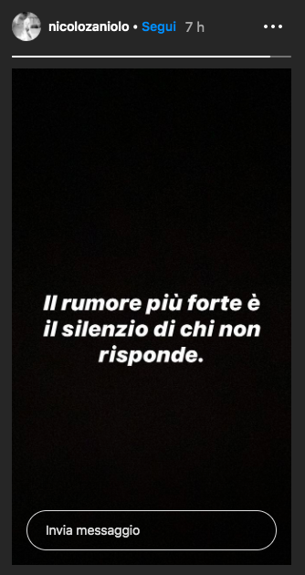 Nicolò Zaniolo ha postato una storia con una frase enigmatica: «Il rumore più forte è il silenzio di chi non risponde»